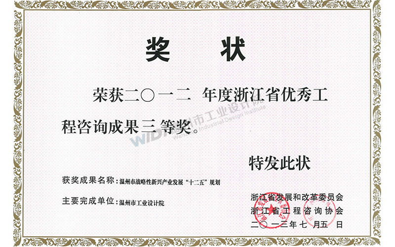 溫州市戰(zhàn)略新興產業(yè)發(fā)展“十二五”規(guī)劃 省優(yōu)秀工程咨詢成果三等獎