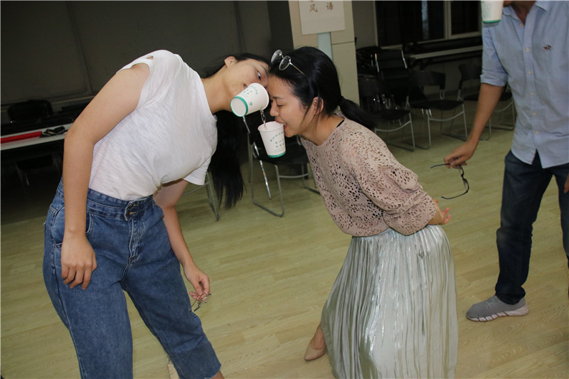 活動(dòng)在勵(lì)志歌曲“追夢(mèng)赤子心”的音樂(lè)聲中拉開(kāi)序幕。大家在指導(dǎo)老師的引領(lǐng)下,分成二個(gè)小組共同進(jìn)入“大風(fēng)吹”“請(qǐng)讓我為你按摩一下下”“優(yōu)點(diǎn)轟炸”“銜紙杯傳水”