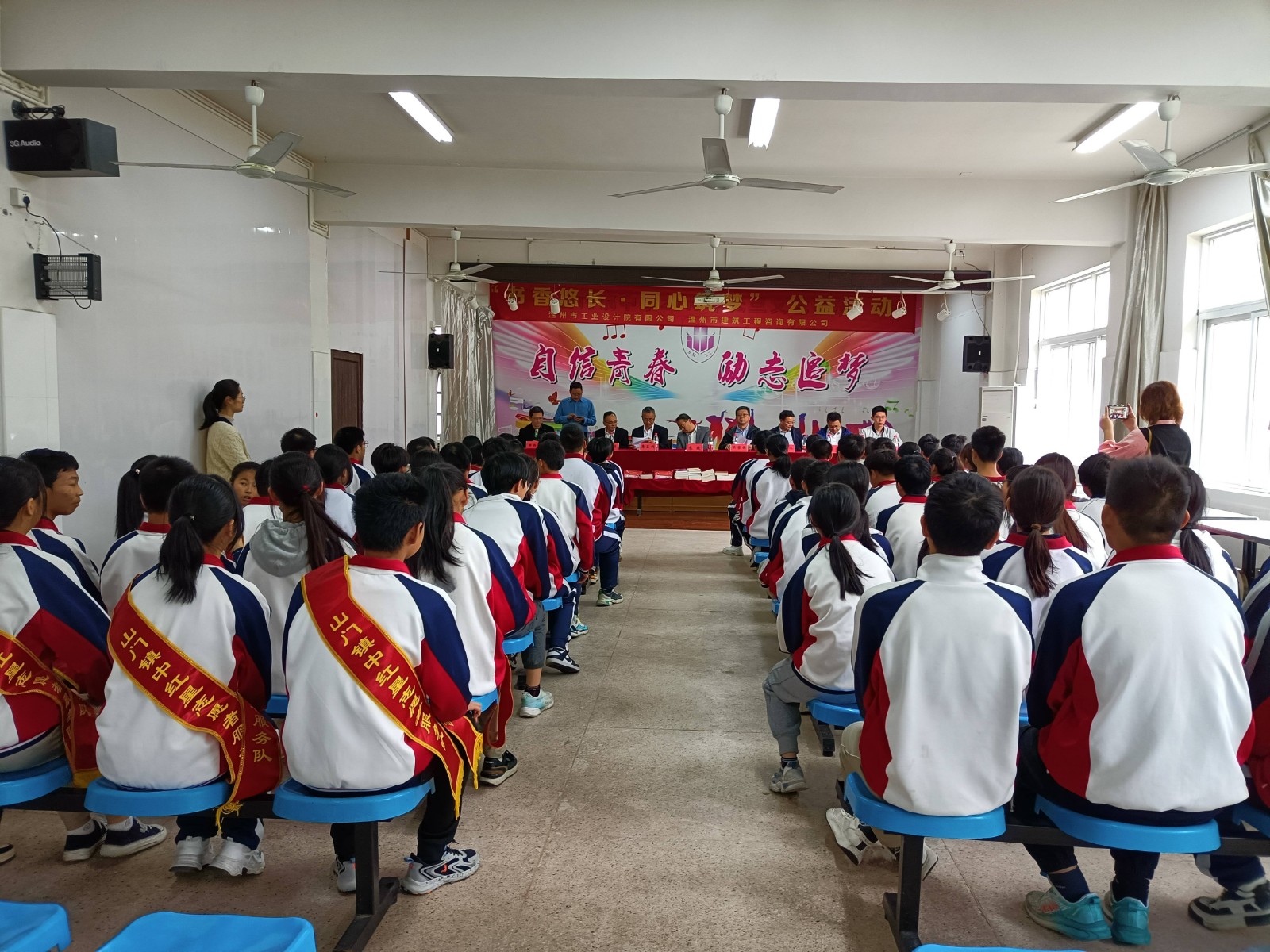 本次活動(dòng)在雄偉莊嚴(yán)的國(guó)歌聲中拉開(kāi)了帷幕,山門鎮(zhèn)黨委副書(shū)記、鎮(zhèn)長(zhǎng)蘇斌,山門鎮(zhèn)初級(jí)中學(xué)書(shū)記、校長(zhǎng)蘇連福首先對(duì)工業(yè)院、建設(shè)咨詢公司一行的到來(lái)表示歡迎,對(duì)兩支部關(guān)心老區(qū)教育,心系老區(qū)學(xué)子,熱心公益事業(yè)致以衷心的感謝。蘇斌表示,學(xué)校今后將大力開(kāi)展閱讀活動(dòng),努力打造書(shū)香校園,希望學(xué)生們通過(guò)閱讀打開(kāi)通往世界的大門。同時(shí),他教導(dǎo)學(xué)生們要以感恩之心暢享閱讀、沐浴書(shū)香,以優(yōu)異的成績(jī)來(lái)報(bào)答社會(huì)的關(guān)愛(ài)之情。