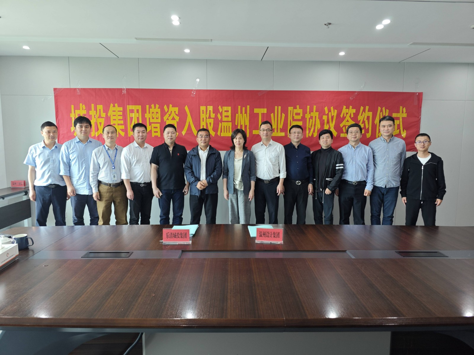 為落實(shí)《市屬國企穩(wěn)進(jìn)提質(zhì)增資擴(kuò)能攻堅(jiān)行動方案》的部署要求,加快國資國企合作步伐,進(jìn)一步優(yōu)化國有資本布局結(jié)構(gòu),5月8日上午,樂清城市建設(shè)投資集團(tuán)有限公司(以下簡稱:樂清城投集團(tuán))增資入股溫州設(shè)計(jì)集團(tuán)工業(yè)設(shè)計(jì)院簽約儀式在樂清城投集團(tuán)總部大樓隆重舉行。溫州設(shè)計(jì)集團(tuán)黨委副書記、副董事長、總經(jīng)理陳春雷與樂清城投集團(tuán)黨委書記、董事長余福平共同簽署增資入股協(xié)議。溫州設(shè)計(jì)集團(tuán)黨委副書記、副總經(jīng)理謝明化,總建筑師項(xiàng)志峰,樂清城投集團(tuán)總經(jīng)理王云雷 、副總經(jīng)理倪揚(yáng)建等共同參加。